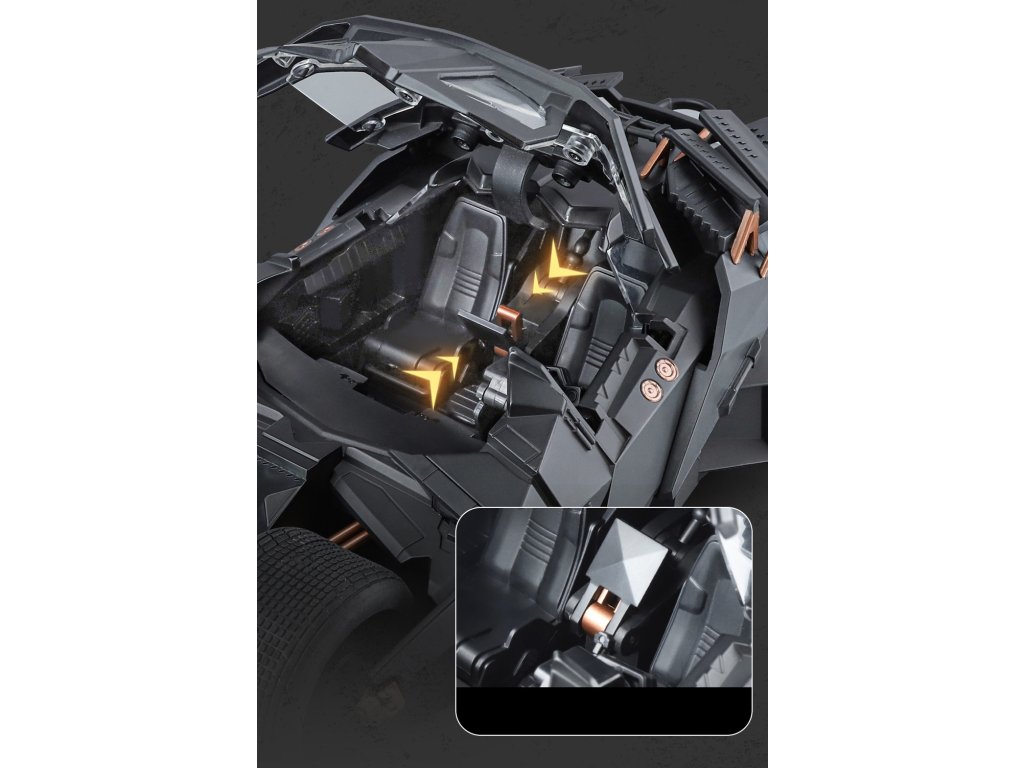 Propracovaný kovový autentický model Batmobilu od Batmana.
