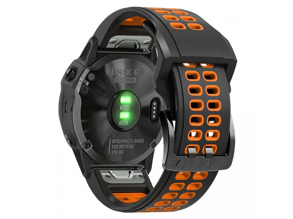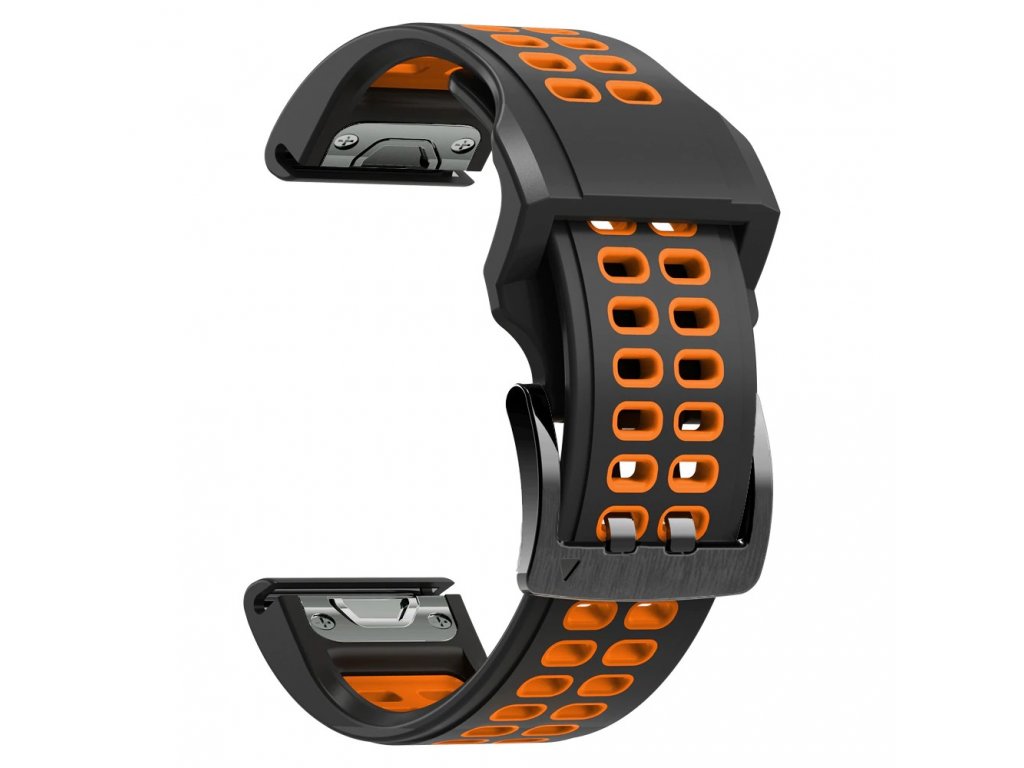 DOUBLE Silikonový gumový řemínek pro Garmin Fenix 22mm černý oranžový QuickFit