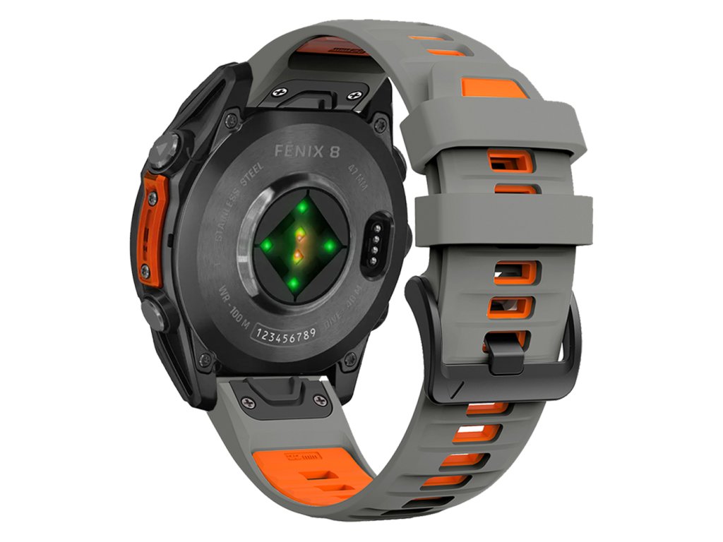 Výrazný dvouvrstvý tvarovaný silikonový řemínek s originálním vzhledem série hodinek Garmin Fenix 8, dostupný v různých barevných variantách. Vysoká kvalita zpracování, odolnost a stylový vzhled. Řemínek má kovovou přezku a systém rychloupínání QuickFit.