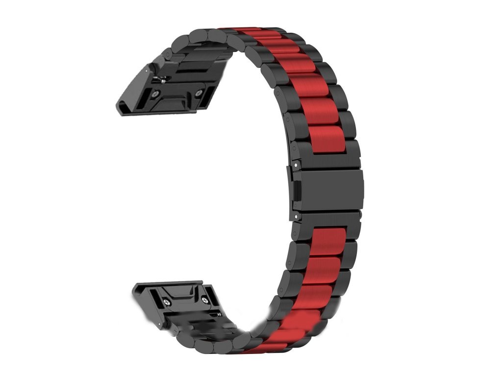 ELEGANT 22mm kovový řemínek pro Garmin Fenix černý červený QUICKFIT
