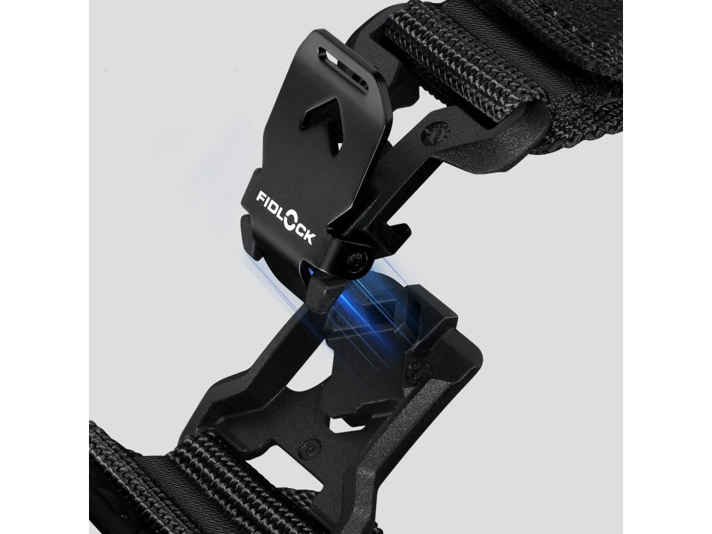 Používá pokročilou magneticko-mechanickou přezku Fidlock V z nerezové oceli 316L.