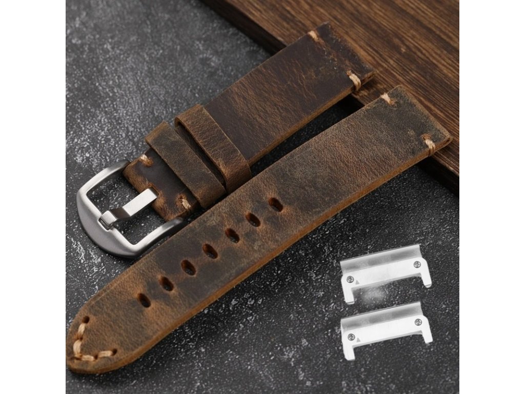 HANDMADE 26mm prošívaný hnědý kožený řemínek Garmin Fenix Tactix QuickFit