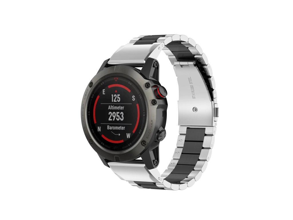 ELEGANT 22mm kovový řemínek pro Garmin Fenix stříbrný černý EASYFIT/QUICKFIT
