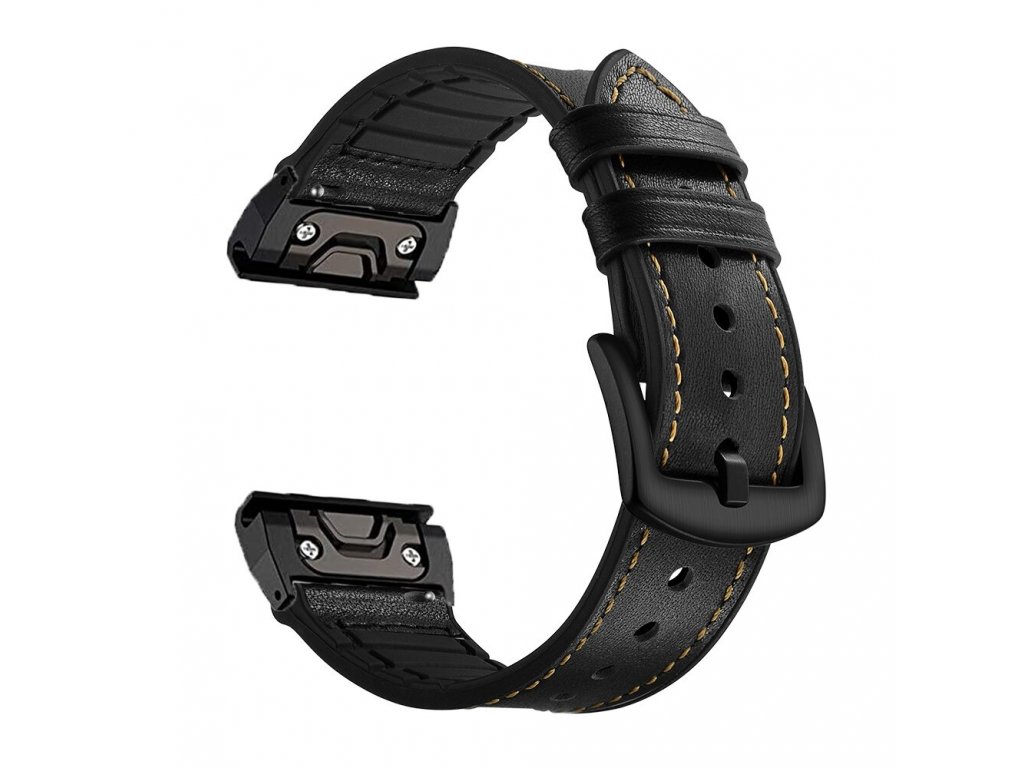 Kožený silikonový řemínek černý pro Garmin Fenix 26mm QUICKFIT