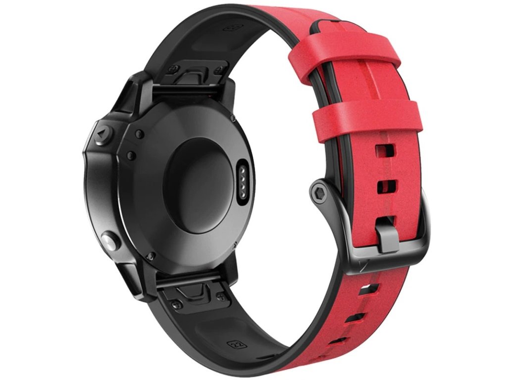 Kožený silikonový řemínek COMFORT červený pro Garmin Fenix 26mm EASYFIT/QUICKFIT