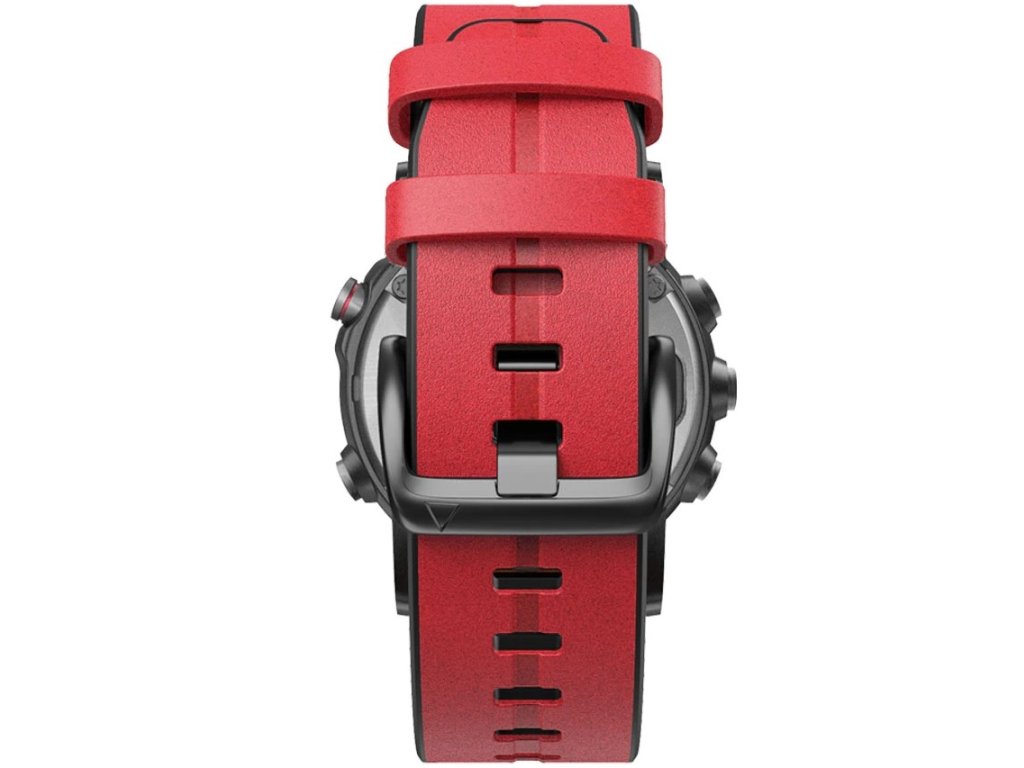 Dvouvrstvý kožený řemínek. Červená kůže. Spodní část řemínku je silikonová, horní část je kožená. Řemínek tedy kombinuje komfortní nošení a vzhled koženého řemínku. Díky této kombinaci je možné tento kožený řemínek používat i při sportovních aktivitách. Řemínek má kovovou přezku a systém rychloupínání QuickFit.