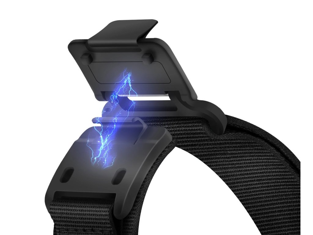 Používá pokročilou magneticko-mechanickou přezku Fidlock V z nerezové oceli 316L.