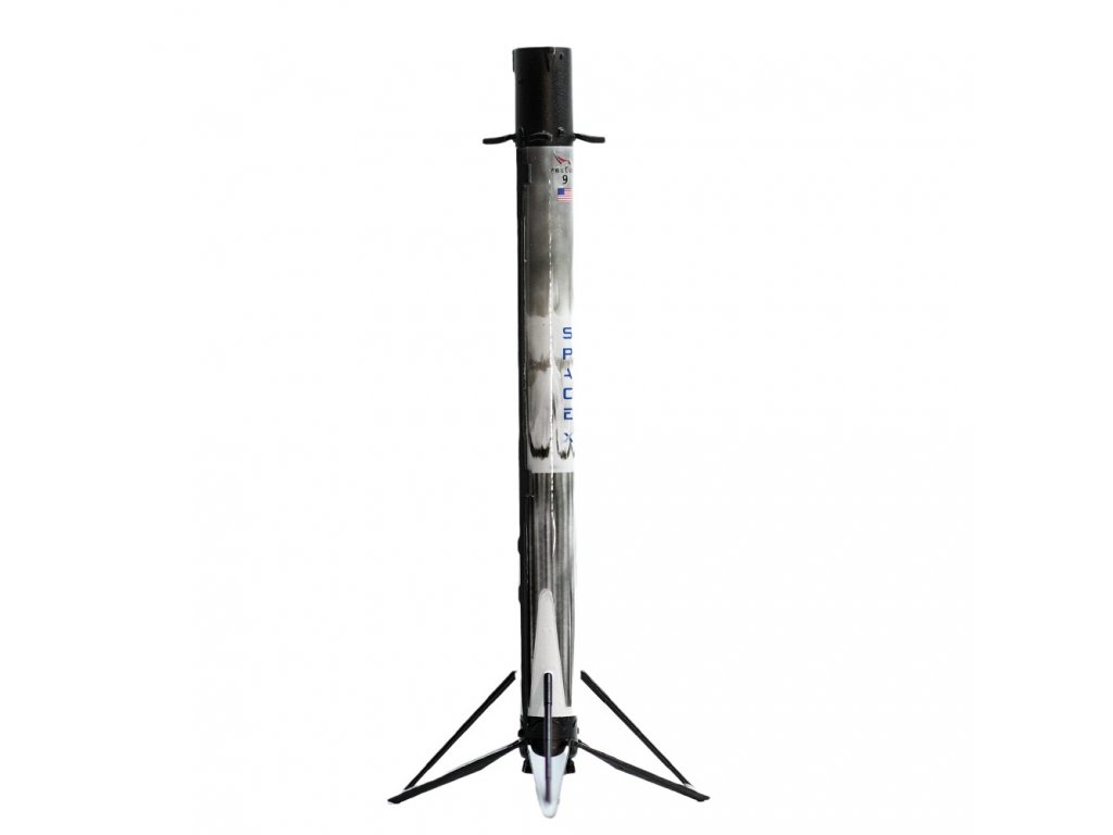 Reálný model prvního stupně rakety Falcon 9 Block 5 SpaceX po přistání. Model obsahuje detaily jako jsou motory, roštová kormidla, přistávací nohy a také popisy rakety. Autentický opálený vzhled.